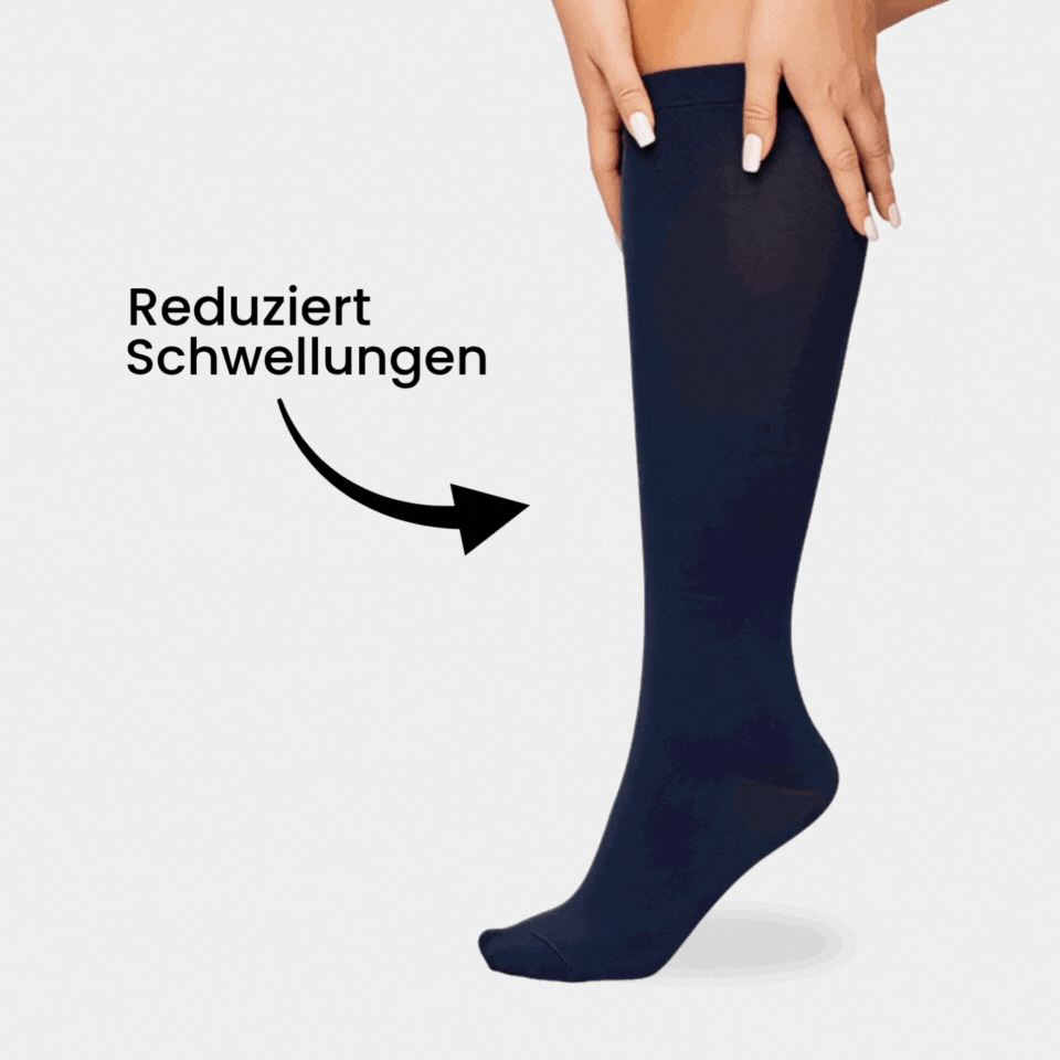 Sie bieten eine sanfte, abgestufte Kompression, die die Blutzirkulation fördert, Schwellungen reduziert und spürbar entlastet.